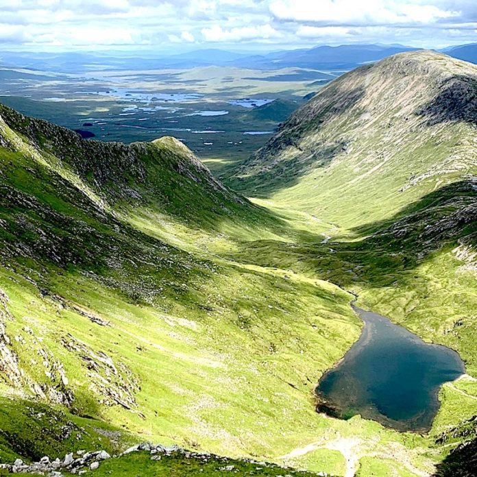 As we climb the route is undulating with occasional breathtaking views down into the Lost Valley, that ancient keep for stolen cattle centuries ago. Pitch black ravens croke and watch over us. We dip down a loose scramble of broken terrain and approach the “bad step”. We have researched this and are happy it is well within our client’s capability. And so we scramble upwards carefully and with patience. Put simple; this is pure adventure. All other thoughts slip away. We are alone in the wilderness and we are all smiling and laughing together.